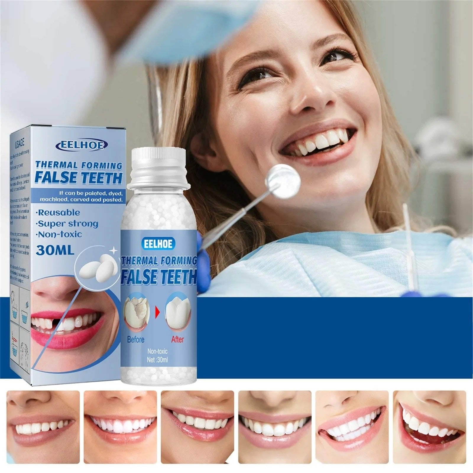 Kasta helmet kuumaan veteen, muotoile sormillasi ja aseta ne haluttuun kohtaan. Väliaikainen hammaskorjaus kovettuu nopeasti ja näyttää luonnolliselta – täydellinen ratkaisu tärkeisiin tilanteisiin kuten työhaastatteluihin, valokuviin tai sosiaalisiin tapaamisiin.