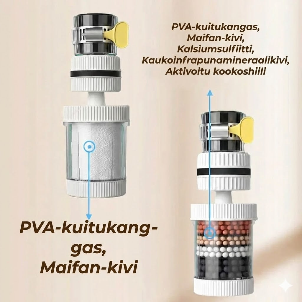 Sano hyvästit juomaveden epäpuhtauksille ja pahoille hajuille premium-tason hanasuodattimellamme. Nämä edistyneet suodattimet tasapainottavat veden pH-arvoa ja eliminoivat epäpuhtaudet, jotta perheesi voi nauttia raikkaasta ja puhtaasta vedestä suoraan hanasta. Tämä ratkaisee kloorin ja pahan maun ongelmat välittömästi ja takaa suoran parannuksen päivittäiseen nesteytykseesi. Se on ihanteellinen ratkaisu jokaiseen kotitalouteen, joka tavoittelee terveellisempää elämäntapaa ilman monimutkaisia ja kalliita järjestelmiä.
