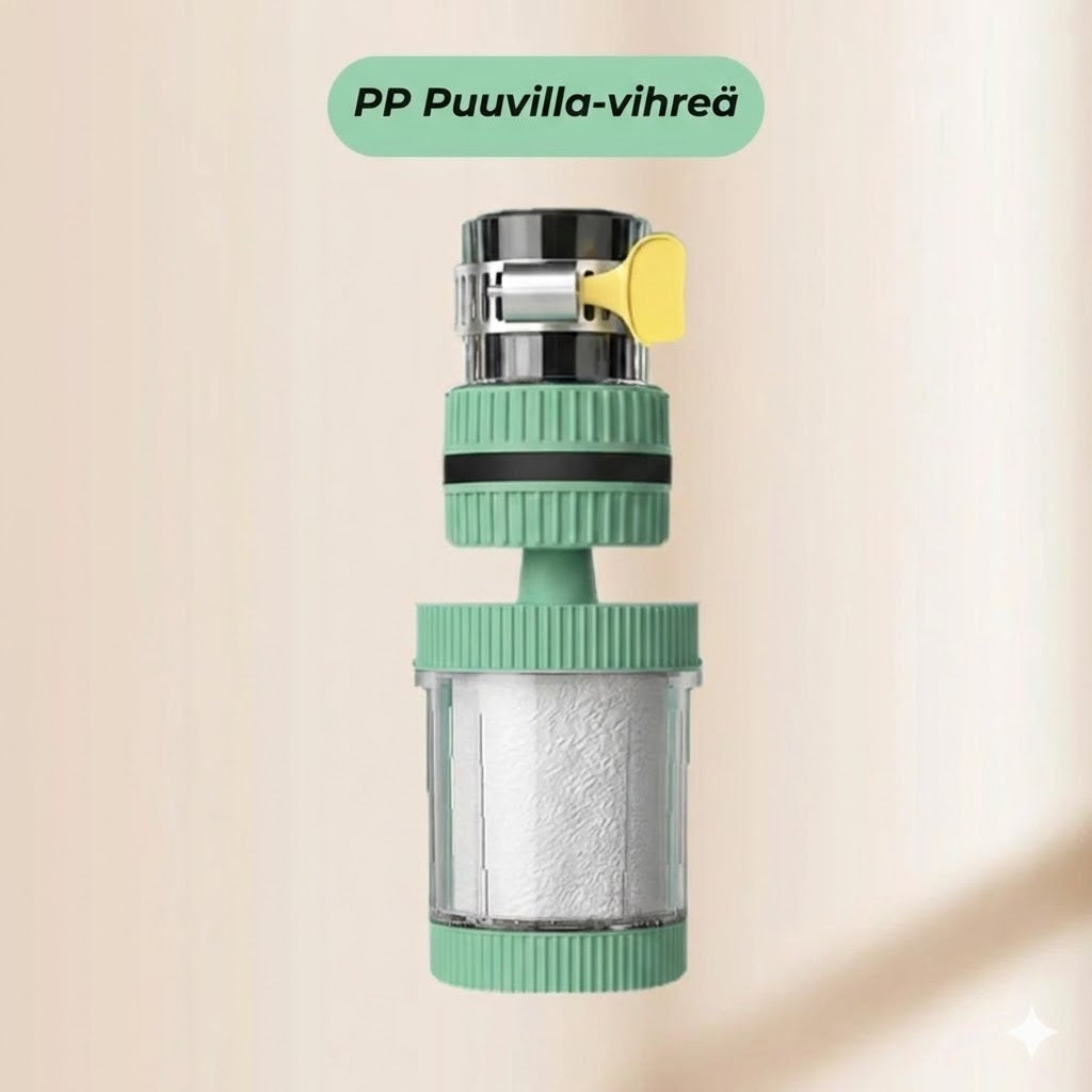 Uuden hanasuodattimesi asennus on lastenleikkiä eikä vaadi lainkaan työkaluja tai putkimiestä. Kiinnitä suodatin yksinkertaisesti hanaan ja nauti välittömästä ja huomattavasta vedenlaadun parantumisesta. Myös suodattimen vaihtaminen on suunniteltu tarjoamaan optimaalista käyttömukavuutta, joten olet aina varmistunut raikkaasta vedestä minimaalisella vaivalla. Tämä järjestelmä on kätevin ja helpoin tapa päivittää keittiösi vedenlaatu ammattitasolle ilman suuria remontteja tai kalliita kustannuksia.