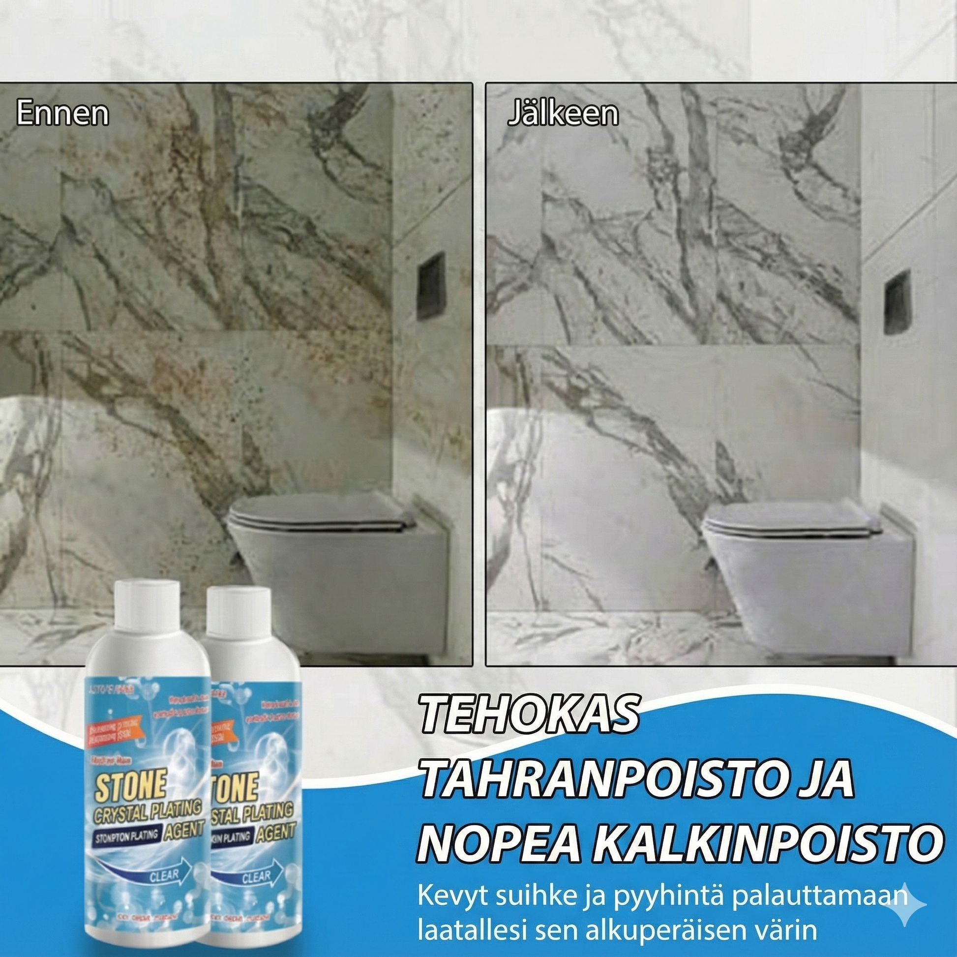 Kärsitkö himmeistä, laikukkaista tai elottomista kivipinnoista, jotka pilaavat kotisi ilmeen? Tällä tehokkaalla kivenpuhdistus- ja uudistusaineella palautat välittömästi luonnonkiven alkuperäisen kiillon ja syvän värin. Edistyksellinen koostumus tunkeutuu syvälle pintaan ja poistaa pinttyneet tahrat, ruosteen ja syvälle kertyneen lian vaivattomasti ja nopeasti. Lattiasi ja työtasosi näyttävät uusilta vain muutamassa minuutissa. Se on ihanteellinen ratkaisu antamaan sisustuksellesi raikas, ylellinen ilme ilman kalliita remontteja.