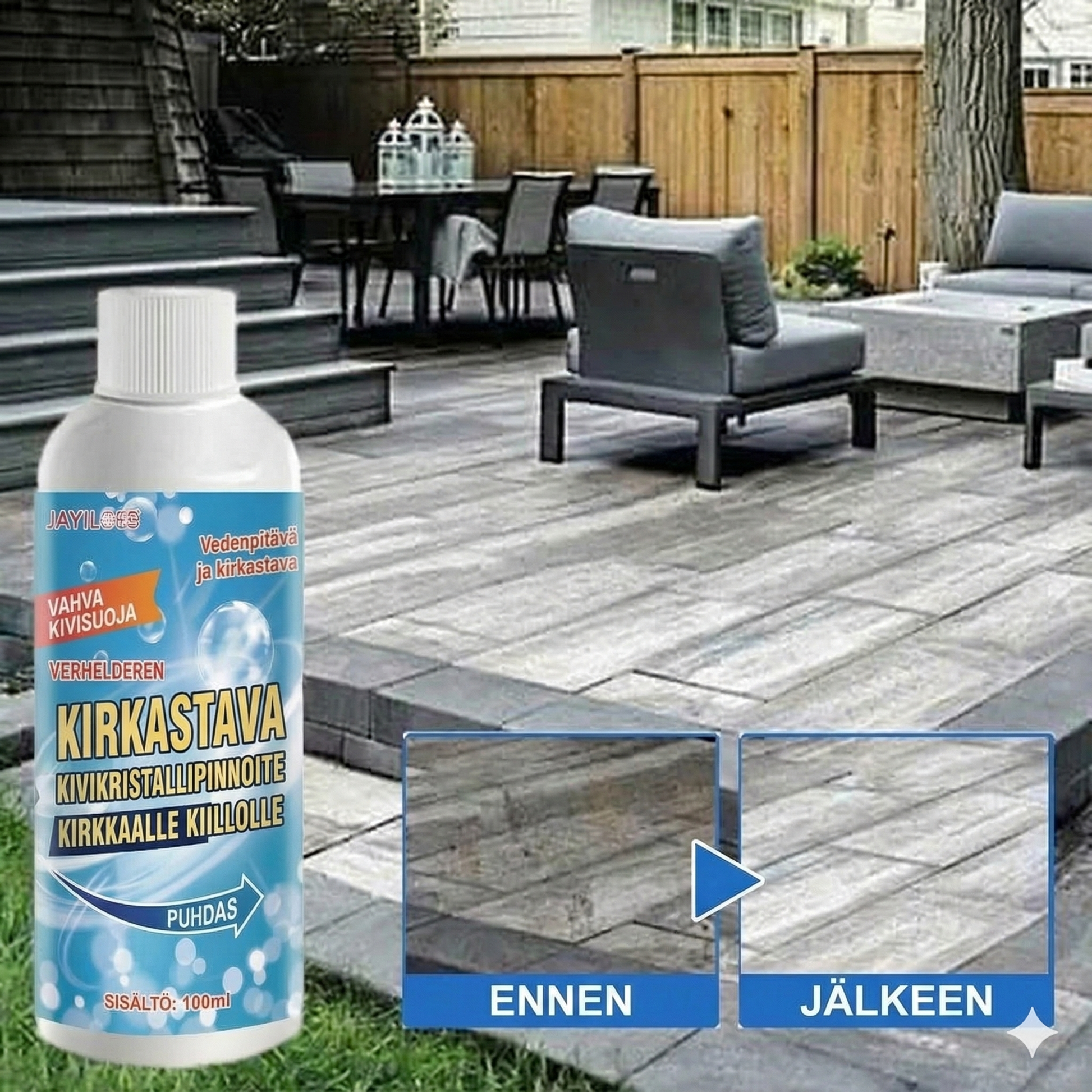 Unohda monimutkaiset käsittelyt tai kalliiden asiantuntijoiden palkkaaminen. Tämä tuote on suunniteltu maksimaalisen helppokäyttöiseksi: puhdista pinta irtoliasta, levitä aine, harjaa kevyesti ja huuhtele. Saavutat hetkessä upean lopputuloksen, joka on välittömästi kaikkien nähtävillä. Se tekee raskaan kuuraamisen tarpeettomaksi ja varmistaa, että nautit tahrattomasta, hohtavan puhtaasta kodista nopeasti ja vaivattomasti.
