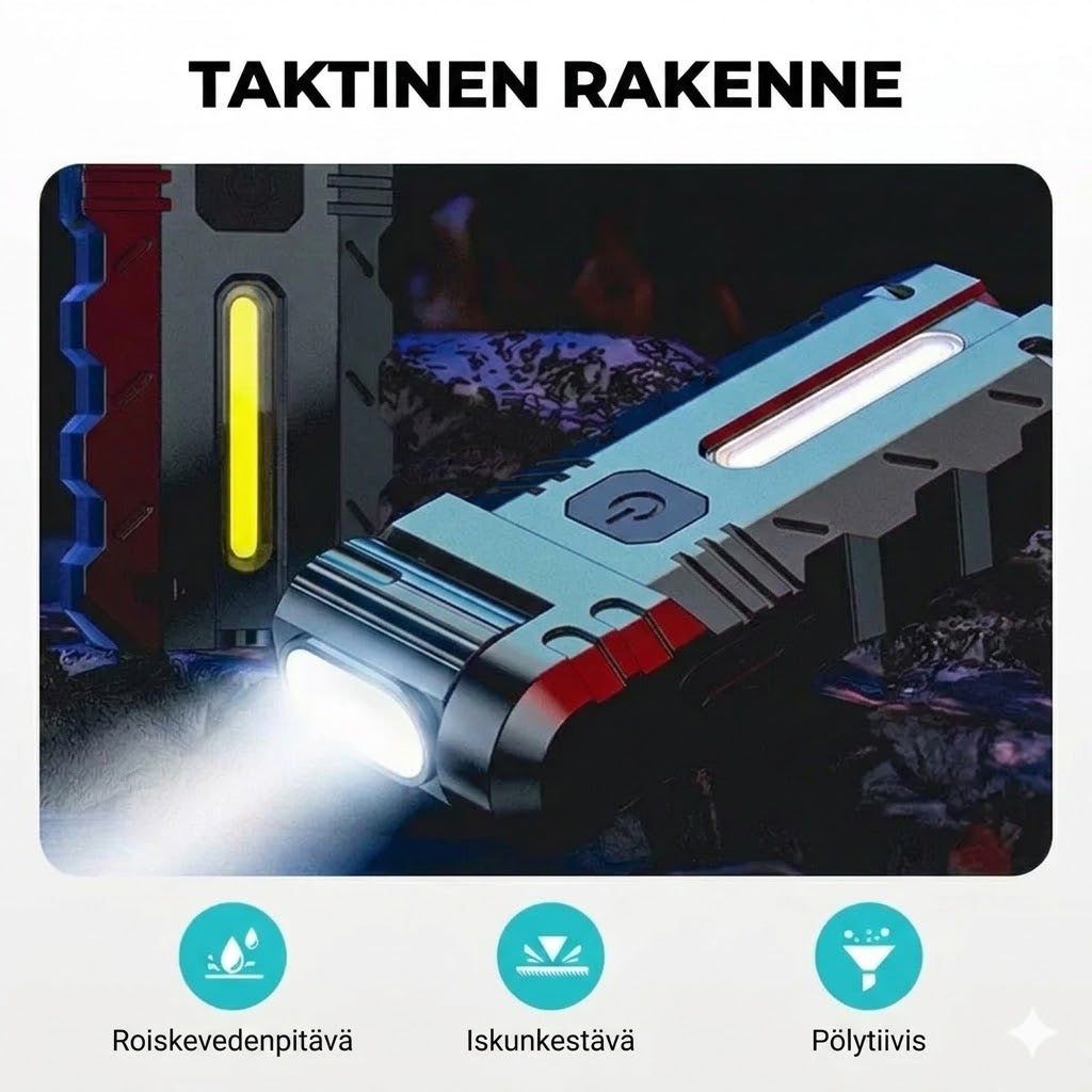 Lopeta taistelu valokeilan kanssa, joka osoittaa aina väärään suuntaan remontin tai tutkimusmatkan aikana. Tämä 180 astetta kääntyvällä päällä varustettu ulkoilun taskulamppu ratkaisee valaisukulman ongelman välittömästi. Voit suunnata voimakkaan valokeilan äärimmäisellä tarkkuudella juuri sinne, missä sitä tarvitaan, ilman koko laitteen liikuttamista. Tämä tehostaa työskentelyäsi heti, tehden pimeässä remontoinnista tai hämärässä liikkumisesta huomattavasti vaivattomampaa ja nopeampaa.