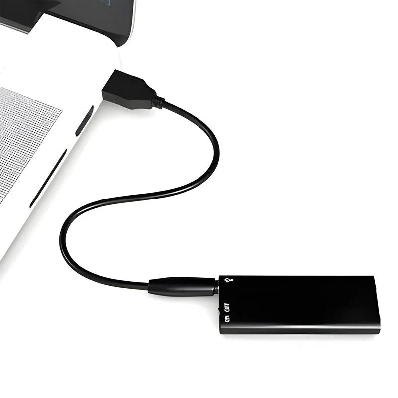 Vain 47 x 19 mm kokoisena tämä tallennin on kannettavuuden huippua. Sen ohut ja kevyt muotoilu on suunniteltu pysymään piilossa, mikä ratkaisee välittömästi huomiota herättävien tallennuslaitteiden ongelman. Intuitiivinen yhden painikkeen käyttö tekee laitteesta erittäin helppokäyttöisen, joten voit aloittaa tallennuksen sekunneissa yllättävissäkin tilanteissa. Tämä tehostaa työskentelyäsi välittömästi, sillä voit keskittyä täysillä keskusteluun tallentimen hoitaessa yksityiskohtien taltioinnin puolestasi saumattomasti.
