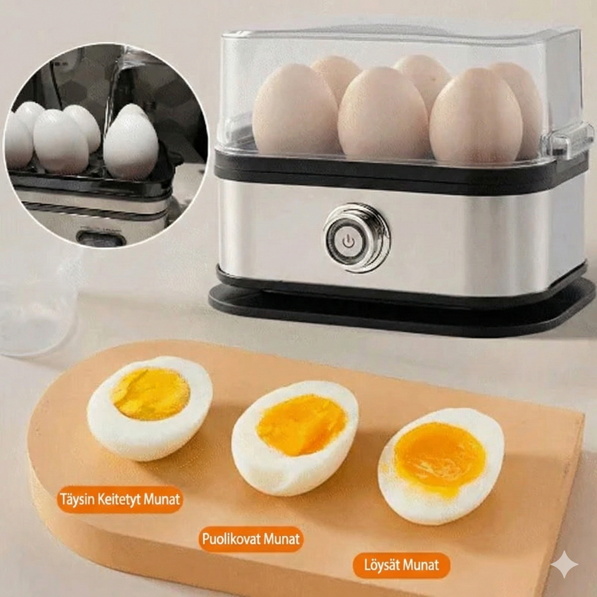 Ota kaikki irti keittiöstäsi tällä monipuolisella tehopakkauksella, joka tekee paljon muutakin kuin vain keittää munia. Halusitpa sitten höyrytettyjä vihanneksia, nyyttejä tai dim sumia, valmistat ne kaikki yhdellä napin painalluksella. Tämä on ihanteellinen ratkaisu nopeiden ja terveellisten aterioiden valmistamiseen, ja se sopii erinomaisesti kaikille, jotka haluavat syödä tietoisesti ilman monimutkaisia reseptejä. Monitoiminen muotoilu poistaa tarpeen useille eri laitteille, säästäen tilaa ja vaivaa.