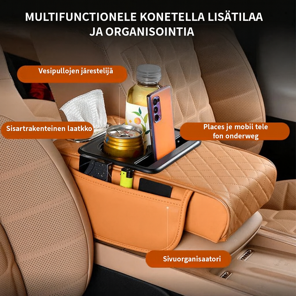 Pitkät ajomatkat eivät enää rasita kehoa, kun käytössäsi on Monitoiminen luksus-keskikonsolityyny. Se tarjoaa ergonomisen käsituen sekä kätevän säilytystilan puhelimelle, avaimille ja asiakirjoille. Vähemmän stressiä – enemmän järjestystä ja ajonautintoa.