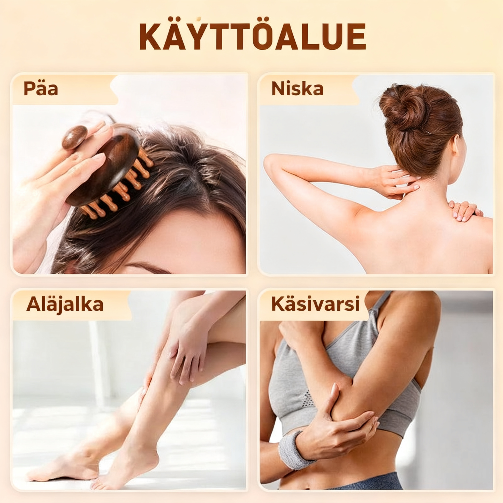 Tämä luonnonpuinen hierontakampa tarjoaa ylellisen ja rauhoittavan kokemuksen, joka auttaa vapauttamaan jännitystä päänahasta, niskasta ja hartioista jo muutamassa sekunnissa. Sileä ja hypoallergeeninen pinta tuntuu miellyttävän lämpimältä ihoa vasten, tehden jokaisesta käyttökerrasta pienen irtioton arjesta. Täydellinen valinta sinulle, joka haluat nopeaa helpotusta stressiin ja kireisiin lihaksiin.