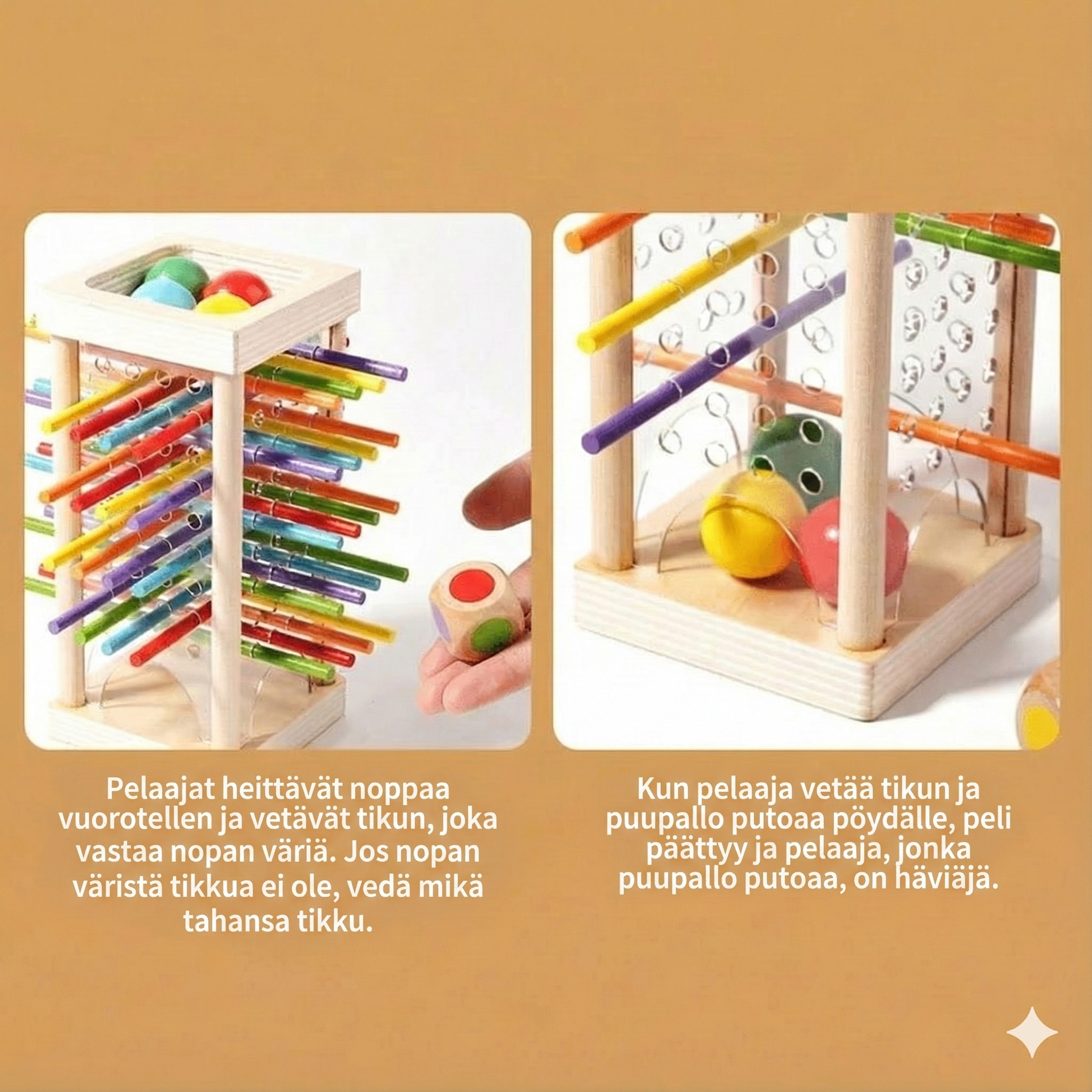 Haluatko tarjota lapsellesi mielekästä tekemistä passivoivan ruutuajan tilalle? Tämä kehittävä puinen tikkupeli on tehokkain tapa antaa lapsesi kognitiivisille taidoille välitön ja voimakas piristysruiske. Kirkkaat ja eloisat värit herättävät mielenkiinnon heti, kun taas vuorovaikutteinen pelitapa kehittää keskittymiskykyä ja ongelmanratkaisutaitoja hauskalla tavalla. Se on täydellinen yhdistelmä oppimista ja iloa, jonka parissa lapsesi viihtyy itsenäisesti tuntikausia, samalla kun hän oppii uutta.